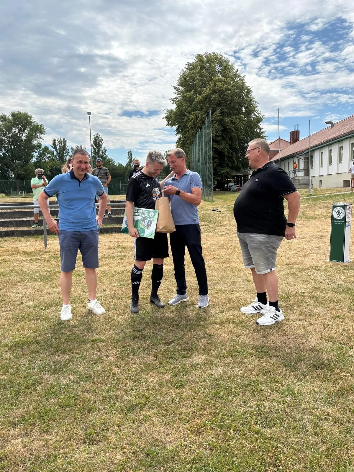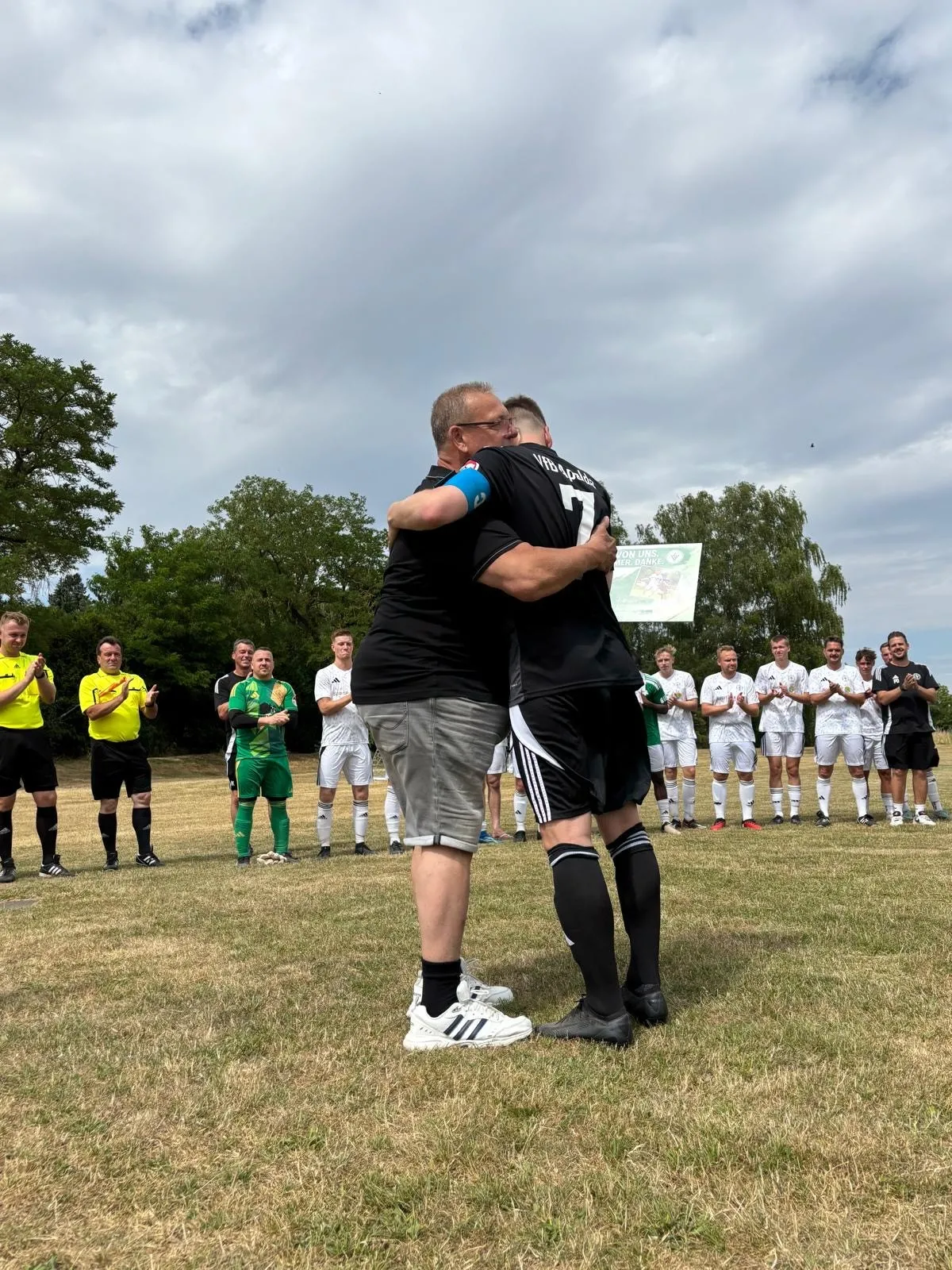 Nach unzähligen Jahren und weit über 400 Pflichtspielen wurde unser Kapitän Tobias Döpel am Samstag mit einem emotionalen Abschiedsspiel geehrt. Viele Weggefährten waren dabei, es gab Applaus, Vereinsfarben in der Luft – und natürlich Fußball.