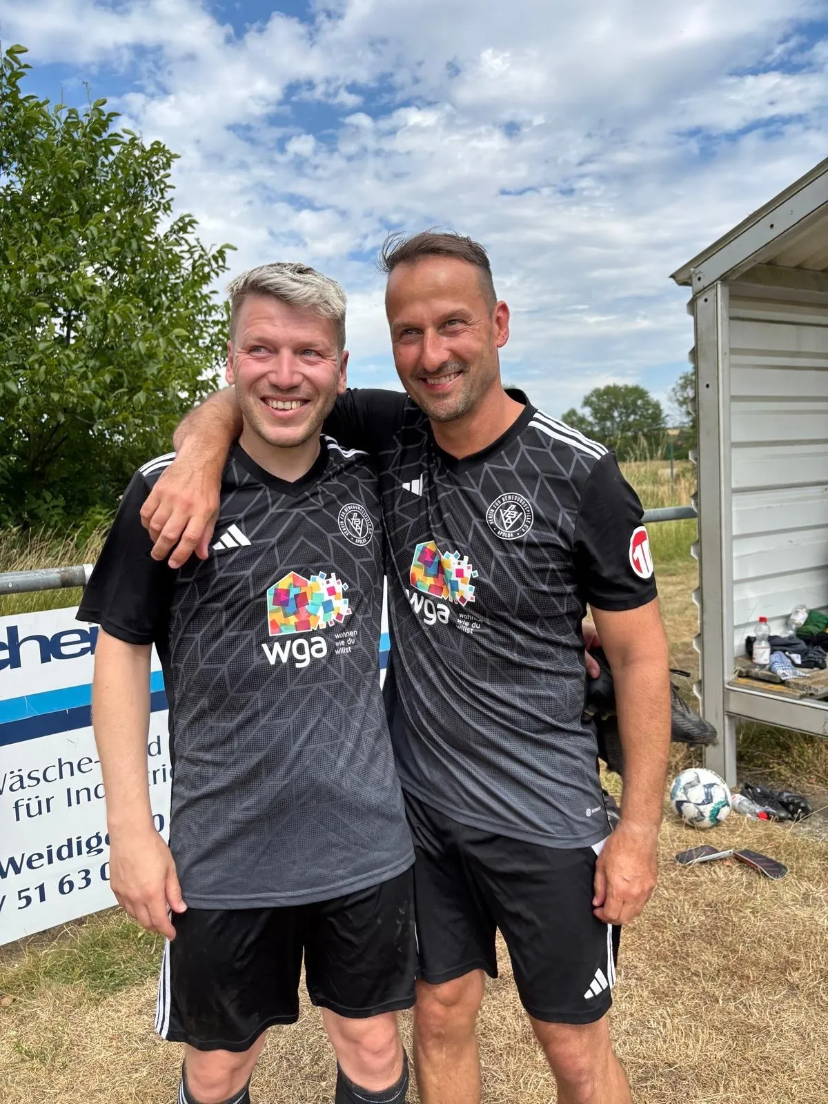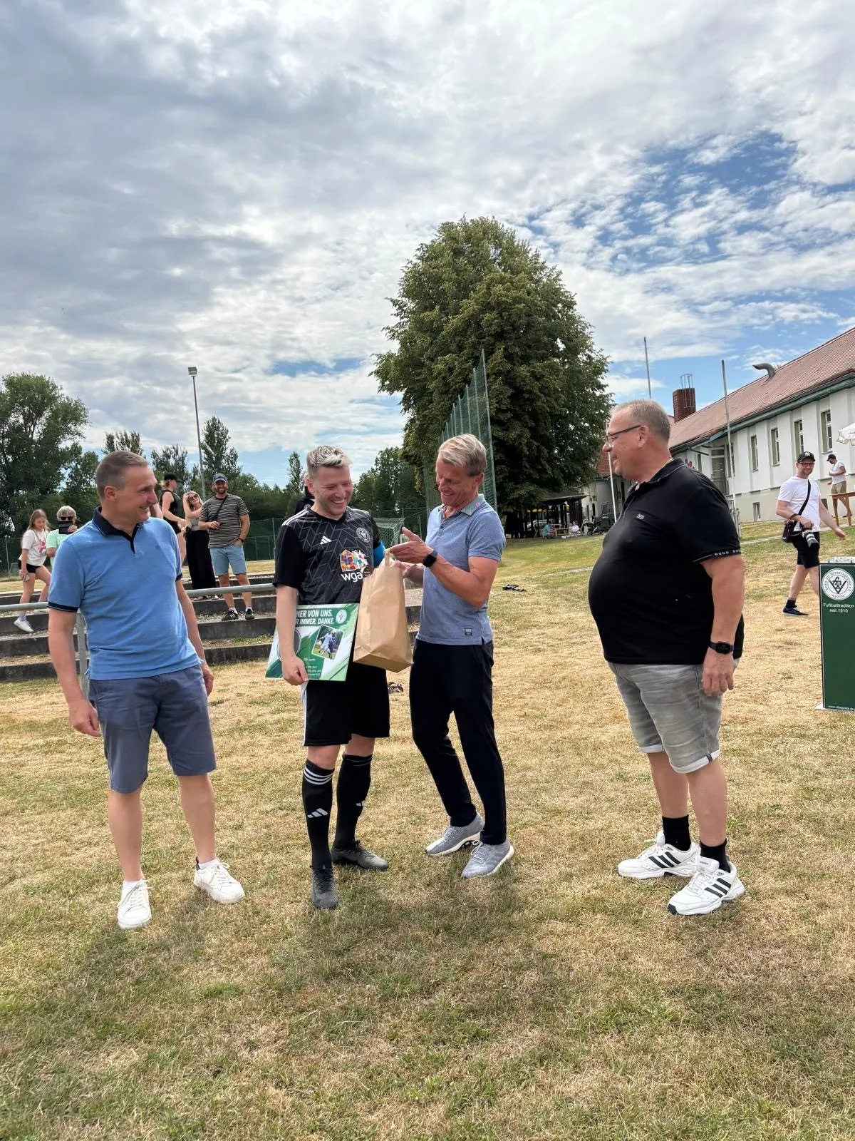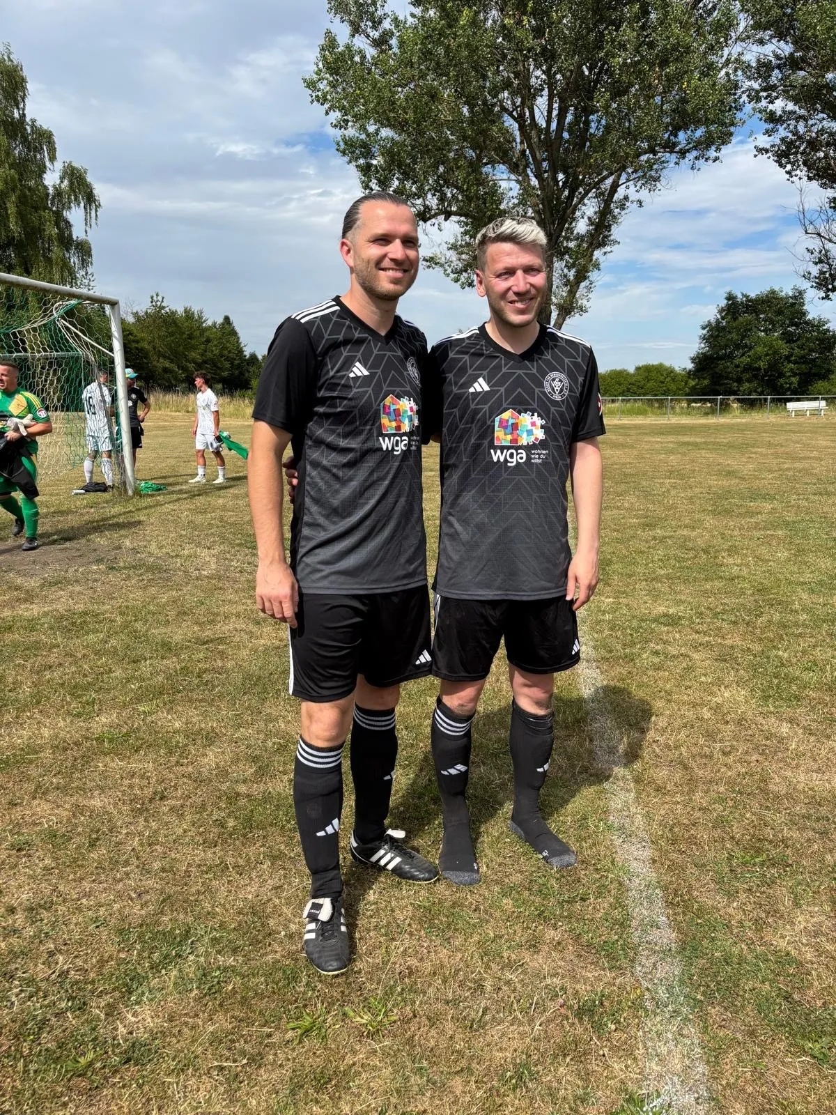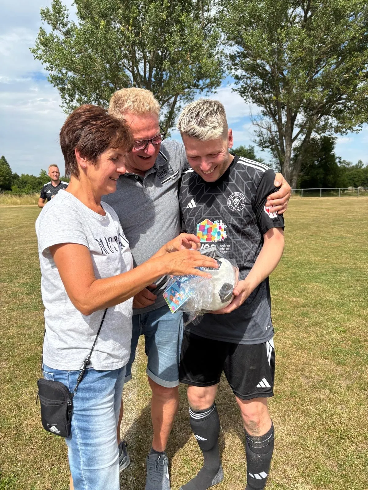 In der ersten Halbzeit ging der VfB mit 1:0 in Führung – wenn auch etwas glücklich, denn dem Treffer ging ein Platzfehler voraus. Nach der Halbzeit wechselte Tobi dann auch die Seiten. Anton Rabe erhöhte mit einem feinen Lupfer auf 2:0. Kurz darauf stellte Florian Sprenger nach einem gelungenen Doppelpass auf 3:0 – doch das war alles Nebensache, an diesem ganz besonderen Tag.